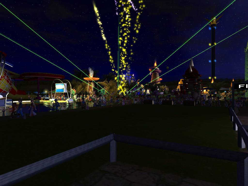 Kedves kis színfolt a kiegészítőben a delfin- és gyilkos bálna show. Ezek szerencsére nem olyan passzív látványosságok, mint az alapjáték cirkusza vagy a cowboy show, amit csak lerakunk és megy magától. Itt – hasonlóan a tűzijátékhoz – mi magunk állíthatjuk össze a show elemeit, hogy mit csináljanak vízi kedvenceink. Ráadásul nem csak fix listából választhatunk figurákat, hanem fejlesztéssel újakat dolgozhatunk ki. Az igazán profik pedig összehangolhatják a delfinek és bálnák ugrálását szökőkút-, tűzijáték- és lézershow-val is. Ezt a fénykavalkádot persze nem csak a delfinekkel együtt, hanem önállóan is megteremthetjük. Így a parkunkat este nem csak tűzijátékkal dobhatjuk fel.