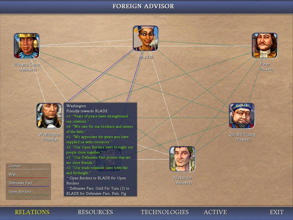 A katonai egységek hasonlóak a korábbi játékokban megszokottakhoz, de a szabályokban komoly változtatásokat vezettek be. Az eddigi több támadási és védekezési érték helyett egy erő érték jelent meg és ezt módosítja több tényező. Így a környezet, ahol a csata folyik, az adott egység beépített előny/hátrány módosító értékei és végül az adott egység tapasztalati pontjai. Az egységek mini RPG módjára tapasztalati pontokat szereznek harc közben, illetve a megfelelő épületek/civilizációs beállítások hatására is és a játékos döntheti el, hogy a tapasztalati pontokat milyen érték növelésére használja fel. Szerencsére nem kell állandóan harcolnunk, ha ügyesek vagyunk a diplomáciában, akkor csihi-puhi nélkül is megúszhatunk egy-egy találkozást a kardcsörtető szomszédokkal. A diplomáciában persze a szokásos hadüzenet mellett változatos kereskedelmi és egyéb csere lehetőségek is rendelkezésünkre állnak. A vallásos rész bemutatása során már említettem, hogy az azonos vallású birodalmak kedvelik egymást, ezen túl a nyitott határ, az „önzetlen” :-) adakozás és a sikeres diplomáciai tevékenység is növeli a barátságot. A hátbatámadást és a háborút, meg a kereskedelmi ajánlat visszautasítását vagy a segítség elmulasztását is rossz pontként írják jóvá számunkra. Ennek a két hatásnak az egyensúlyaként jelenik meg végül, hogy ki kedvel, ki közömbös és ki utál minket. A játék a diplomáciai képernyőn mindig mutatja a plusz és mínusz pontokat, így ki lehet következtetni, hogy milyen reakció várható egy-egy lépésünkre. Mindez persze arra való, hogy győzelemre segítse a legjobbat, azaz minket. :-)