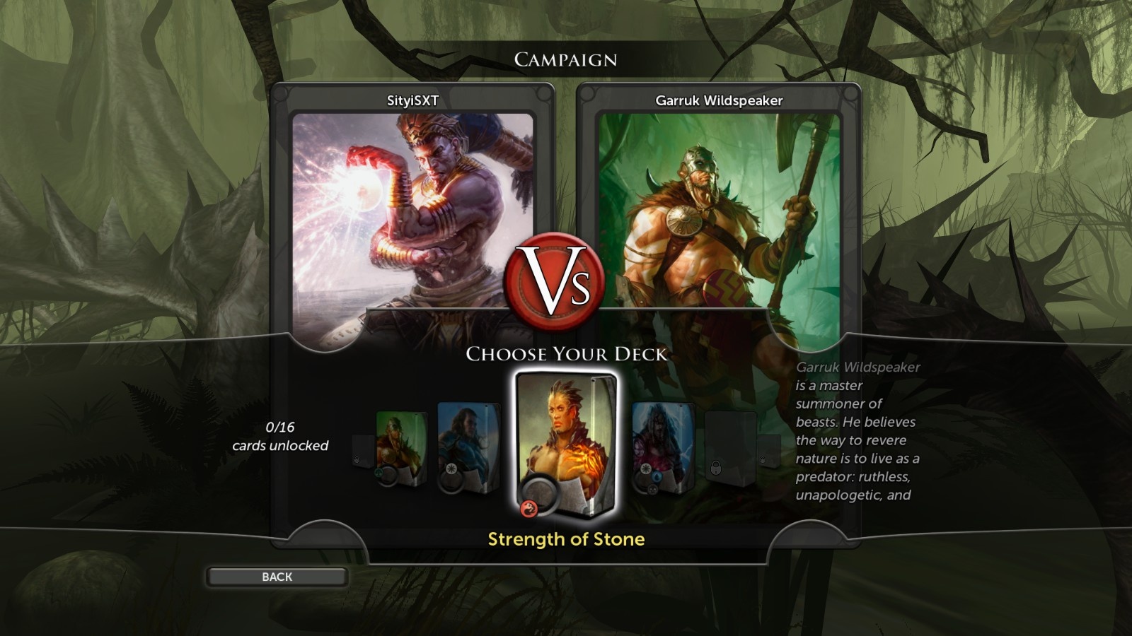 A játék kezdetekor csupán egy 60 lapos paklink van, ezen kétféleképp változtathatunk: ahogy haladunk előre a kampányban, úgy nyerjük el ellenfeleink paklijait – és ahogy egyre több játszmát nyerünk az adott paklival, úgy kapunk újabb lapokat hozzá. Az előző részben a pakliszerkesztőben csupán ezeket a jutalomlapokat vehettük ki, most viszont a teljes pakliból tetszés szerint vehetünk el vagy adhatunk hozzá kártyákat; az egyetlen feltétel, hogy a paklink legalább 60 lapos legyen (azért azt csendben megjegyzem, hogy teljesen saját paklit nem rakhatunk össze, ahhoz a rendes Magickel kell játsszunk). További pozitívum, hogy az előző részhez képest érezhetően kiegyensúlyozottabb paklikat kapunk, és már az alapváltozatokkal is remekül lehet játszani. Ha már a kártyáknál tartunk: az előd egyik legidegesítőbb tulajdonsága az volt, hogy sokszor olyan idétlenül keverte meg a paklinkat a gép, hogy nem tudásunkon múlt a győzelem, hanem hihetetlen balszerencsénken. Én elhiszem, hogy a való életben is előfordulhat, hogy körökön keresztül csak földet húz az ember, de ott ez túl gyakran esett meg (részben a pakliszerkesztő korlátai miatt). Itt szerencsére már más a helyzet: ritka az, amikor a rossz lapjárás miatt vesztünk.