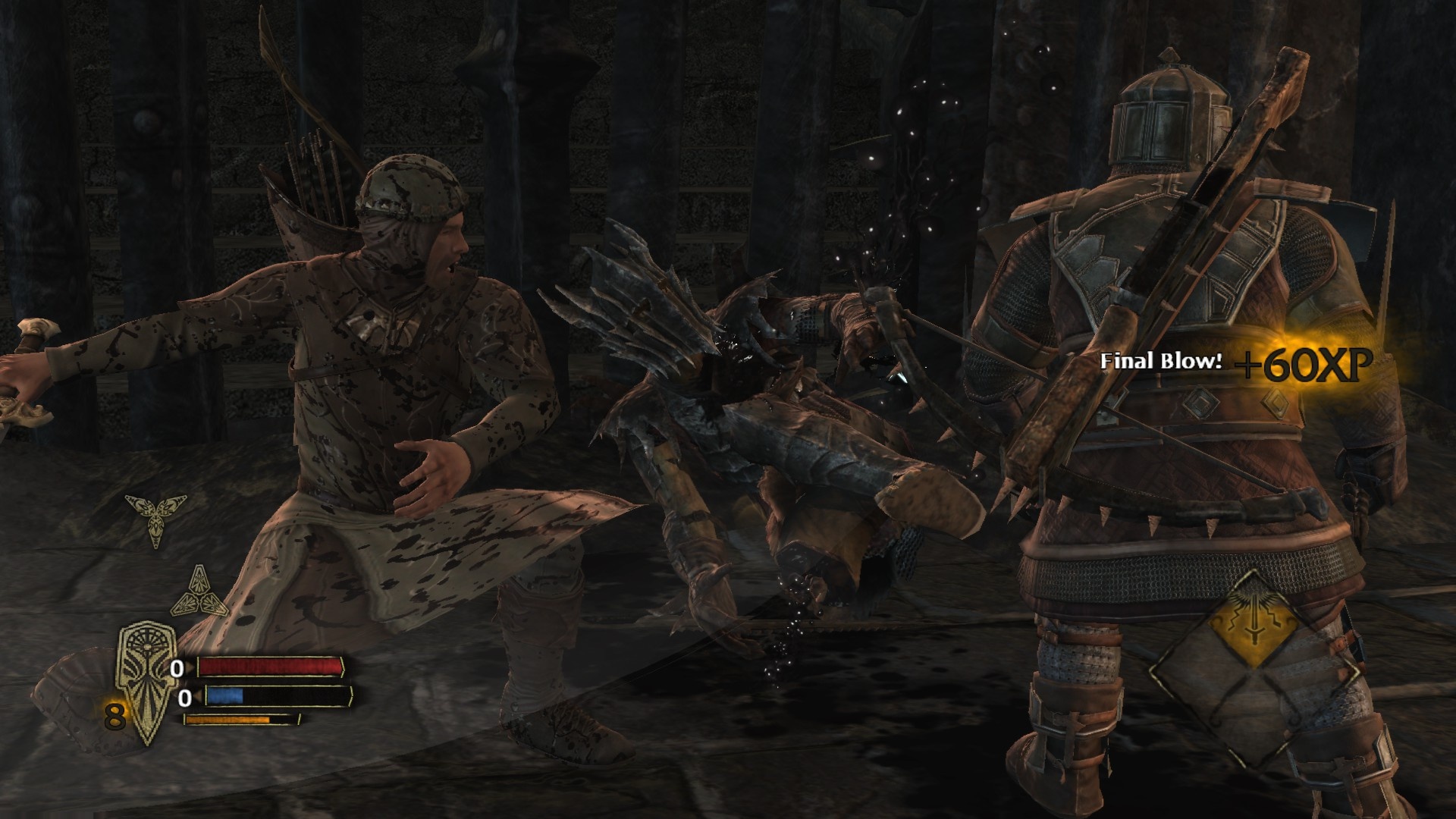 A játékban tehát embertelen mennyiségű orkot, trollt, goblint és hasonló ellenséget fogunk felszecskázni némi tapasztalati pontért cserébe, amivel képességeinket fejleszthetjük. A felszecskázást pedig szó szerint kell érteni: egy-egy látványosabb megmozdulásunk után bizony hullani fognak a fejek, kezek, lábak! Ehhez persze kell egy jó harcrendszer is: nos, ha hasonlítanom kéne valamihez, azt mondanám, hogy olyan, mint a Batman: Arkham Asylum verekedős részei, csak egy kicsit továbbgondolták.