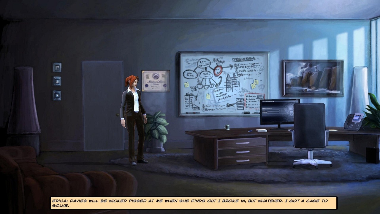 A történettel alapjában véve nincs gond – az a Jane Jensen segített a kidolgozásában, akinek például a méltán sikeres Gabriel Knight sorozatot is köszönhettük. Igen ám, de az ördög a részletekben lakozik! Spoilerezni nem szeretnék, de azt elmondhatom, hogy akadt a játékban feleslegesen túlbonyolított rész, valamint az elvileg döntő befolyással járó választásunk (szerintem egy van az egész játékban) kb. semmit nem befolyásolt. Sebaj, nagyobb a gond a színészi alakításokkal, ugyanis nem egy ripacs sajna túljátssza a szerepét. Mondjuk az alapanyag nem sok támpontot adott szegényeknek: a főhős, Erica még csak-csak kidolgozott jellemnek tekinthető némi jóindulattal, a többiek viszont a ZS kategóriás filmek kétdimenziós kartonfigurái: lepukkant, cinikus, elvált, fánkmániás zsaru; sztachanovista és a depresszióját agresszióval leplező főnök; a misztikus „kisebbségi” régiségboltos nyanyus... Milyen eredeti, nem igaz?