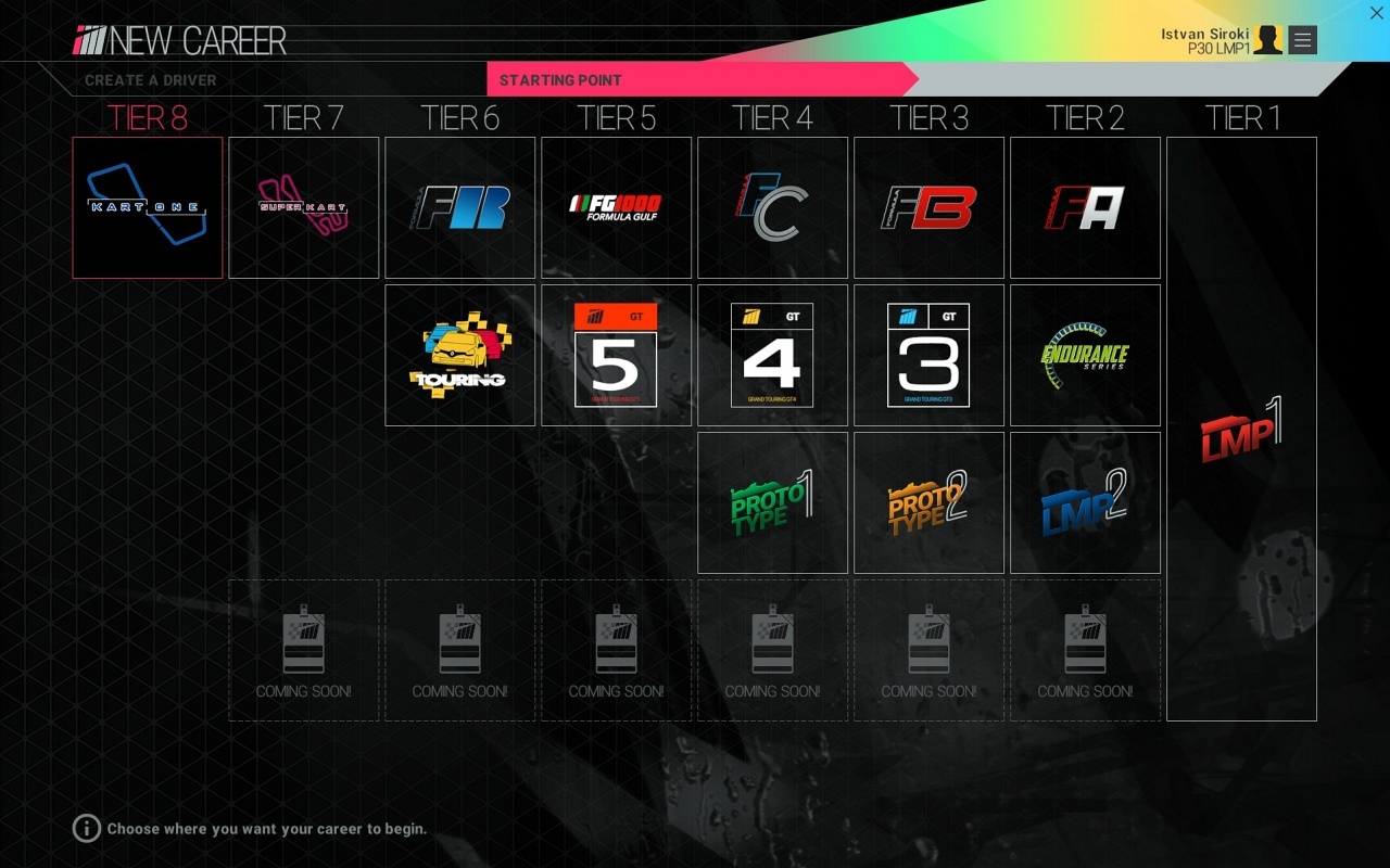 A változatosságra különösebb panaszunk nem lehet, hiszen a mintegy 30 helyszín több mint 110 pályavonallal várja, hogy a hetven-egynéhány verda több ezer lóereje elszabaduljon. A meglovagolható gépállatok meglepően széles spektrumát fedik le a pályaversenyzésnek: a kis gyösz 125 köbcentis gokartoktól kezdve a szupersportkocsikon át a Le Mans prototípusokkal bezárólag számos szakág képviselteti magát a játékban. Ez a sokszínűség természetesen a karrierben is tükröződik, ahol meglepő módon egy sajátos „sandbox” módon építhetjük versenyzői karrierünket, ugyanis a kezdetektől fogva nyitva áll az összes bajnokság. És hogy ennek mi értelme? Kedves Olvasó, Te nem érezted fárasztónak a neked nem (annyira) szimpatikus versenyek ledarálását csak azért, hogy sok-sok óra, nap, hét után végre elérd az általad preferált bajnokságot? Ha nem akarsz gokartozni, semmi gond, nem kell ezzel indítanod. Imádod a GT3 bajnokságot? No problemo, annyi szezont húzol le ott, amennyi jólesik. Persze kezdetben csak a kisebb csapatok ajánlanak szerződést, a nagykutyák figyelmét ki kell érdemelni, ez az aspektus azért megmaradt. És mivel egyetlen autót, egyetlen pályát sem kell feloldani, így a többi játékmódban is elérhető minden mindenkinek - ez talán a többjátékos módban válik igazán értékelhetővé.