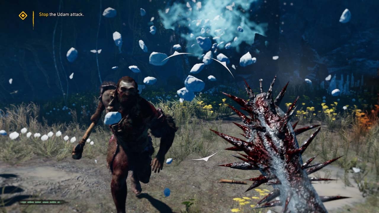 Itt nem tálcán kapjuk a polgárháborúban elkeseredetten küzdő, már létező ellenállást, valamint annak vezetőit és szereplőit, hanem magunknak kell felépítenünk törzsünket, és falvunkat. Ehhez egyesével kell begyűjtenünk minden fontosabb szereplőt – gyűjtögető javasasszonyt, sámánt, vadászmestert, harcost, ezermestert és bölcset –, akik rendre valami új tudást, képességet adnak egyre gyarapodó közösségünknek. Mindegyiküknek építünk a megfelelő nyersanyagok birtokában saját kunyhót, amelyet magasabb szintekre fejleszthetünk a későbbiekben. „Mezei” lakosokat úgy toborozhatunk, hogy megmentjük a kis csoportokba verődve, vagy magányosan kóborló embereket a rájuk leselkedő veszélyektől, elkísérjük őket úti céljukra, vagy kiszabadítjuk őket, ha fogságba estek. A játékban rengeteg különféle nyersanyag található, amelyek szorgos gyűjtögetése elsődleges fontosságú. Ekkor még nem létezett olyan, hogy pénz, így a vásárlás fogalma sem volt ismert. Az volt, amit össze tudtunk szedni, és meg is tudtunk védeni. Csúcstechnika sem létezett a pattintottkő-korszakban, így mindenféle adóvevők, géppityuk meg járgányok helyett maradt a lábbusz, no meg a véres közelharc bunkókkal, dárdákkal, kőbaltákkal, illetve némi távolsági akció íjakkal és egyéb primitív eszközökkel. Az előző részekből megszokott, szabadon bejárható világ a rengeteg mellékküldetéssel és tennivalóval ismét visszaköszön, így a játék felépítése nem sokat változott – azt leginkább a remekül kidolgozott őskori környezet és hangulat teszi kiemelkedővé. A Ubisoft Dunia 2-es motorja ezúttal is szemkápráztató környezetet varázsol körénk, ami azonnal beszippantja az embert, és nem ereszti. Minderre rátesz egy lapáttal a hangulatot sziklaszilárdan alátámasztó őskori nyelvezet, amelyben bizony mi, magyarok is felfedezhetünk ismerős szavakat.