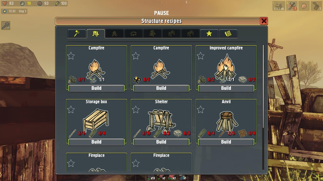 Mint említettem, egy hagyományos túlélő-kalandjátékhoz van szerencsénk, amelyben csak magunkra számíthatunk. A játékmenet lényegét a gyűjtögetés, a szerszámkészítés és persze a zord körülmények közepette való túlélés jelenti. Élelmiszereket (gyümölcsök, állatok húsa stb.), gallyakat, köveket, alkatrészeket, valamint más, hasznosnak tűnő holmikat gyűjthetünk be, amelyek szerte-szét hevernek mindenfelé. Ezekből fegyvereket és használati tárgyakat készíthetünk, vagy tábort építhetünk, hogy a tűznél melegedjünk meg. A tűznél főzhetünk is, idővel komolyabb menedéket építhetünk, egyre komolyabb felszereléseket és fegyvereket eszkábálhatunk. Persze közben oda kell figyelnünk fizikai állapotunkra is, hiszen egy-egy sprint vagy csata alaposan kimerít minket, utóbbiban pedig komolyan meg is sérülhetünk, ami halálhoz vezet. Apropó halál... A játékban ugyan meg lehet halni, de a kiindulóponton újraéledünk, és mindent ugyanott folytathatunk, ahol félbehagytuk, vagyis ez sem jelent különösebb veszélyt ránk.