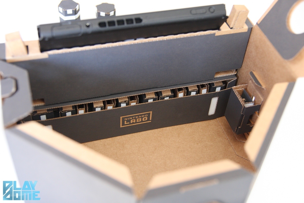 Az autó két oldalán egy-egy bevágás található, amelybe a két Joy-Con vezérlőt lehet beilleszteni. Amikor elkészültünk, az érintőképernyőn található vezérlőpanellel adhatunk parancsot a két Joy-Con rezgőmotorjainak, amelyek aztán mozgásra bírják az autót. Emellett az automata módban az egyik vezérlőben található infraérzékelő segítségével akár a kezünk mozgását is képes követni az autó. Egyébként a Labo gyakorlatilag összes játéka nagyban épít erre a technológiai elemre: az infraérzékelő a kartonra ragasztott fényvisszaverő matricák pozícióját érzékeli a kütyükben.