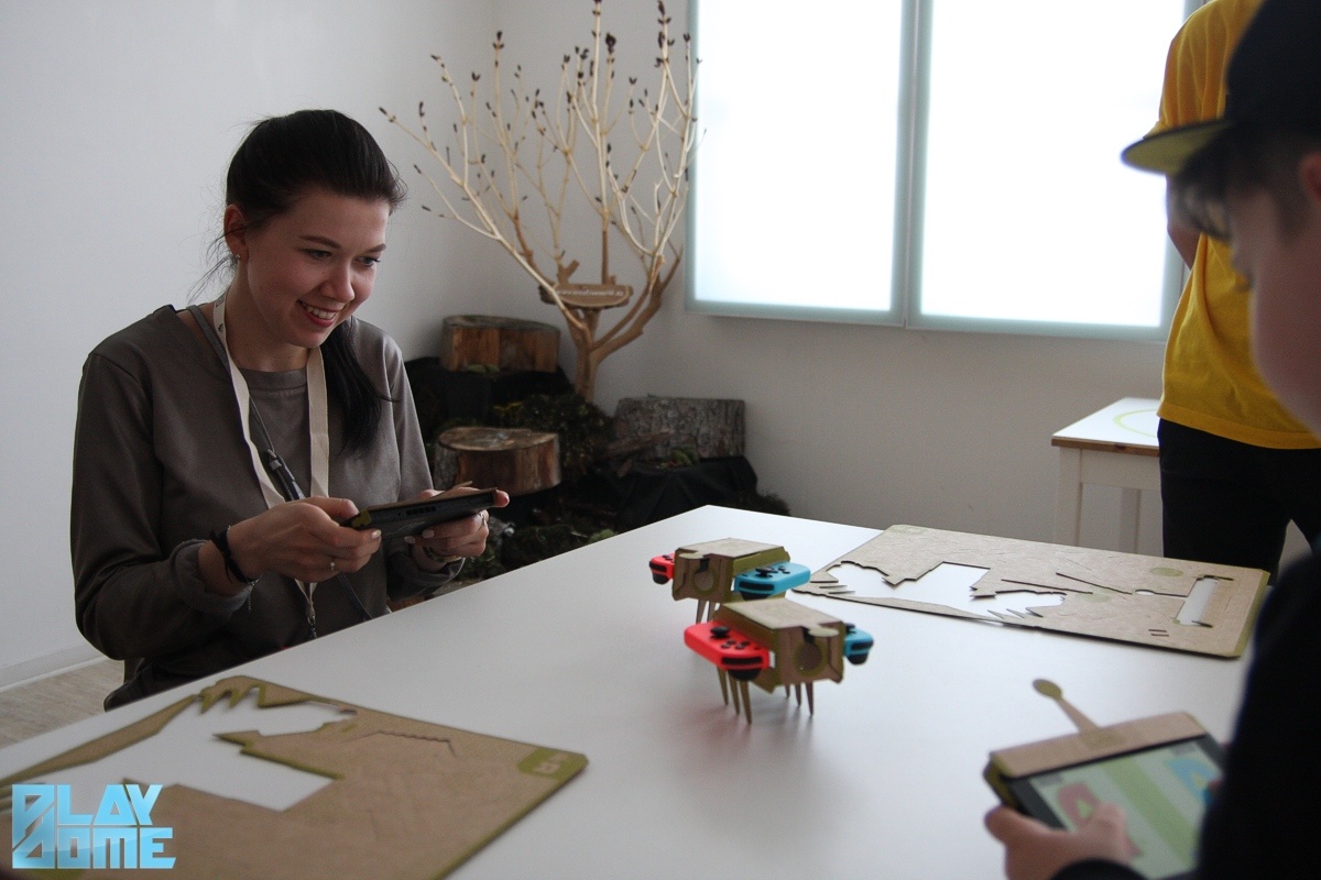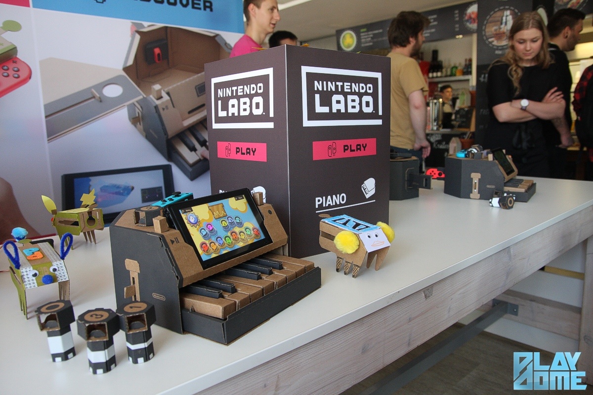 A Labo többi játékát már kész formájukban próbálhattuk ki a rendezvényen, ami érthető, hiszen csak a zongorát összeállítani állítólag jó három-négy órás mutatvány. Szerencsére a szervezők a rendezvény előtti napokban lelkesen hajtogattak nekünk, így minden kiegészítőből legalább 4-5 darab állt rendelkezésünkre (és jó pár tartalékban is állt a raktárban, hogy ha valamelyik megsérülne, gyorsan pótolni tudják). Mind közül talán a már említett zongora volt a legösszetettebb. Az oktávnyi billentyűzet egy valódi hangszerhez hasonlóan működött, a hangot pedig természetesen maga a Switch adta ki, amelyet kijelzőként állíthattunk bele a dobozba. A zongorába több „kulcsot” is bedughattunk, amelyek megváltoztatták a hangokat, a macskáktól egészen az operaénekesekig. A legérdekesebb mégis a dobozka scanner rész volt. Lényegében egy papírlapba bármilyen mintát vághatunk, amit aztán fentről a zongorába helyezve bescannelhetünk, és így a nyomva tartott billentyűvel megszólaltatott hang aszerint mélyül és emelkedik, hogy milyen mintát vágtunk ki. A szoftver viszont még ennél többre is képes: többsávos hangrögzítővé is varázsolhatjuk a kartonzongorát.