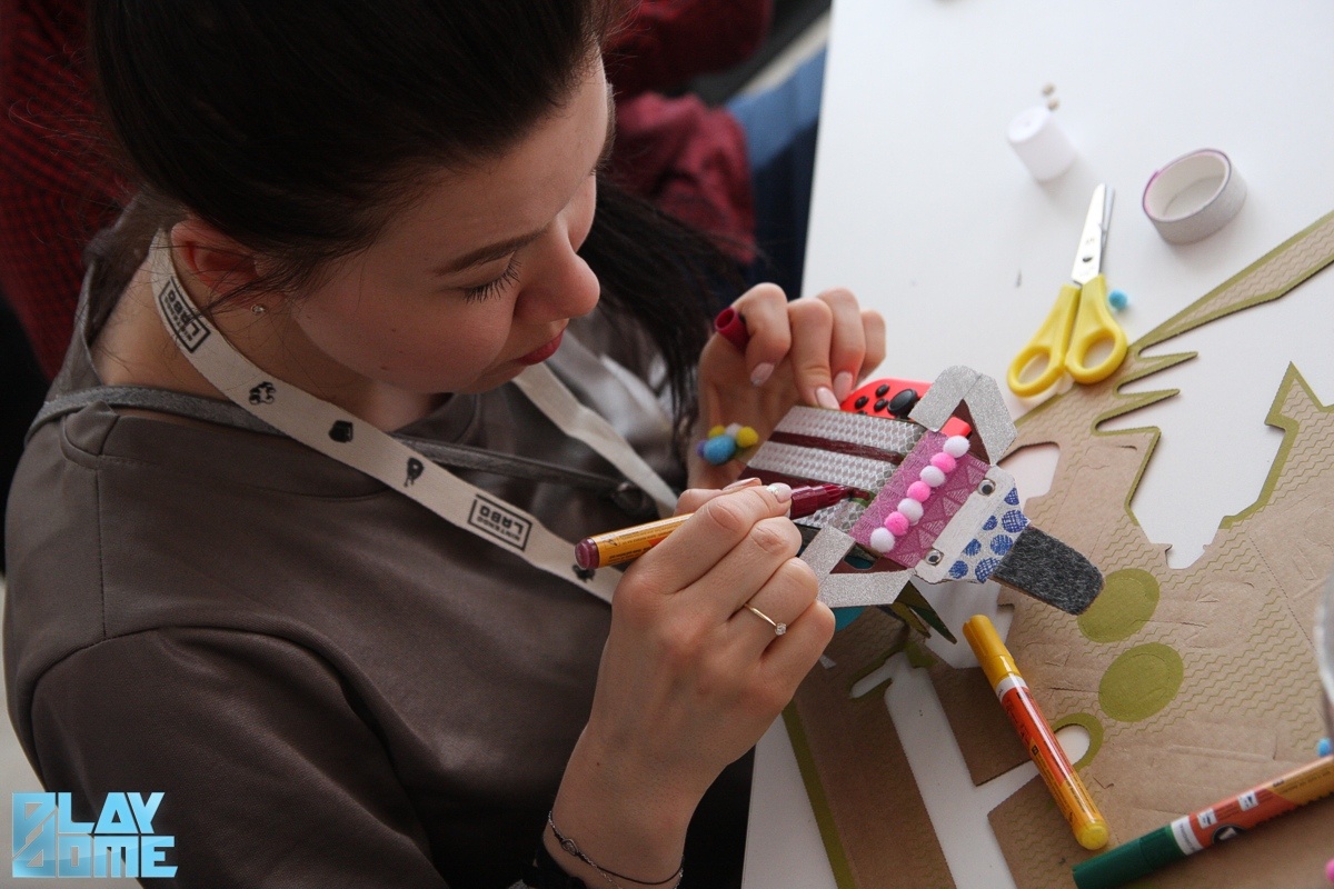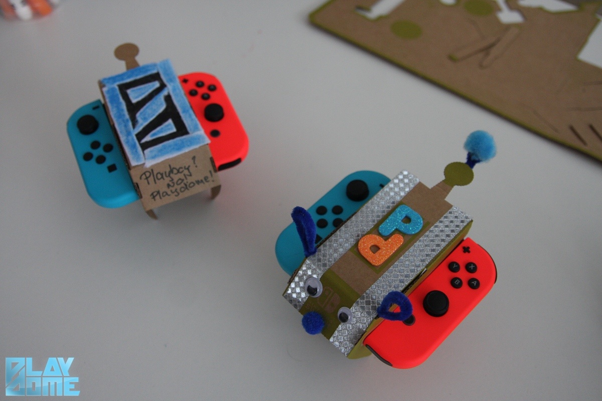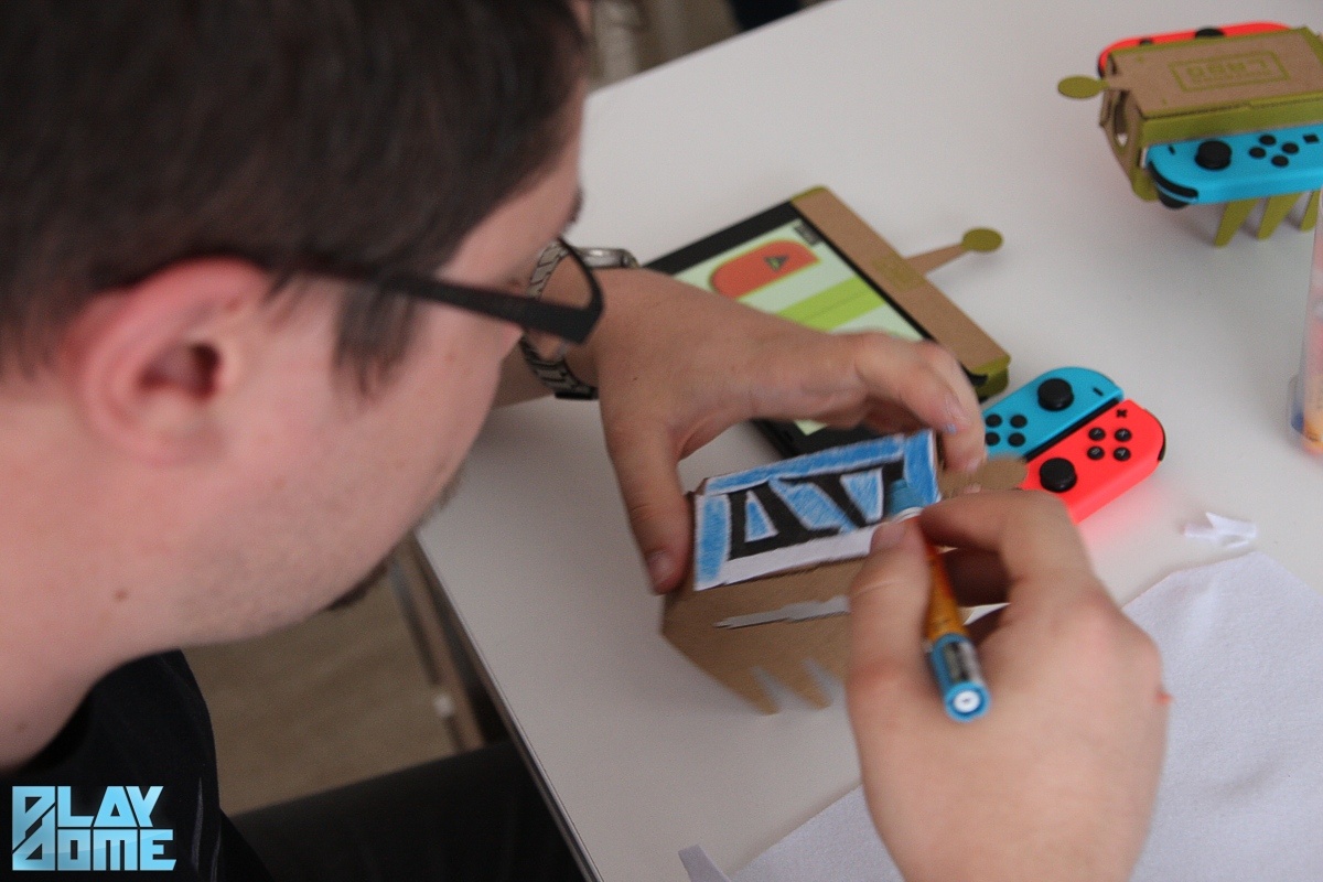A Variety Kit csomagjában összesen öt különböző kütyü kartonlapjai lapulnak. Ez az öt pedig a horgászbot, a zongora, a házikó, a motorbicikli és a távirányítós autó. A rendezvényen kezdésnek mindenki kapott egy-egy stancolt kartont, amelyből a kisautót építhette meg magának. Az igazsághoz tartozik, hogy autónak a legvadabb fantáziával megáldottak is csak megengedő mosollyal az arcukon nevezhetik a nagyjából egér (mármint a számítógépes, nem az élő) méretű kis mütyürt. A kartonból a perforáció mentén kipattintva kapjuk meg a sablont, amelyből aztán a Nintendo Switch képernyőjén látható útmutató alapján hajtogathatjuk össze magát az autót. A rendezvény kreatívabb vendégei ezt kedvükre ki is dekorálhatták – készült egy-két igen ötletes darab is. (De amúgy 4000 forintért vehetünk a Labo készletek mellé egy matricákat, stencileket és ragasztószalagokat tartalmazó csomagot is, ha nem lenne otthon semmi ilyenünk.)
