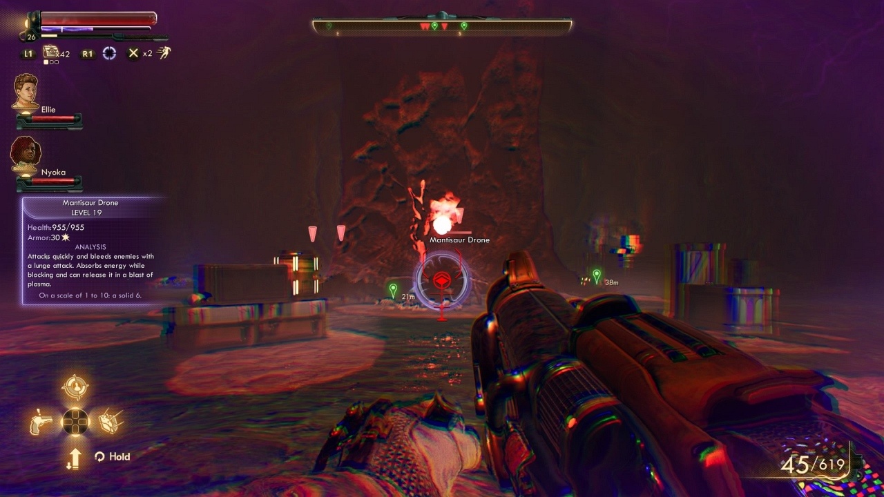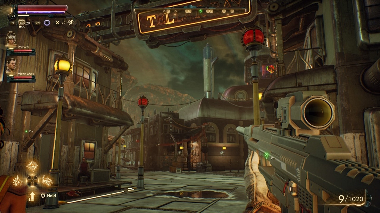 A The Outer Worlds egy szerepjátékelemekkel átszőtt first-person shooter, amely mintegy 20-25 órás kalandot nyújt. Nem kell benne sokat olvasni (a számítógépekből azért kinyerhető elég sok információ a világról), nincsenek túltolva a párbeszédek, és nem is beszélnek sokat a szereplők. Amikor viszont igen, azt nagyon jó humorral teszik, mindent átsző a szatíra – a boltostól kezdve (aki tudvalevően rossz minőségű termékeket árul, de folyamatosan magasztalnia kell az árucikket) az élelmeztetési rendszeren át egészen a gazdag városban lévő nyugdíjasotthon sötét titkáig. Érdekes, morbid és fájdalmasan valóságos jövőképekkel operálnak. Mindenki a boldogság látszatát kelti, mert más opció nincs (ismerős, ugye?).
