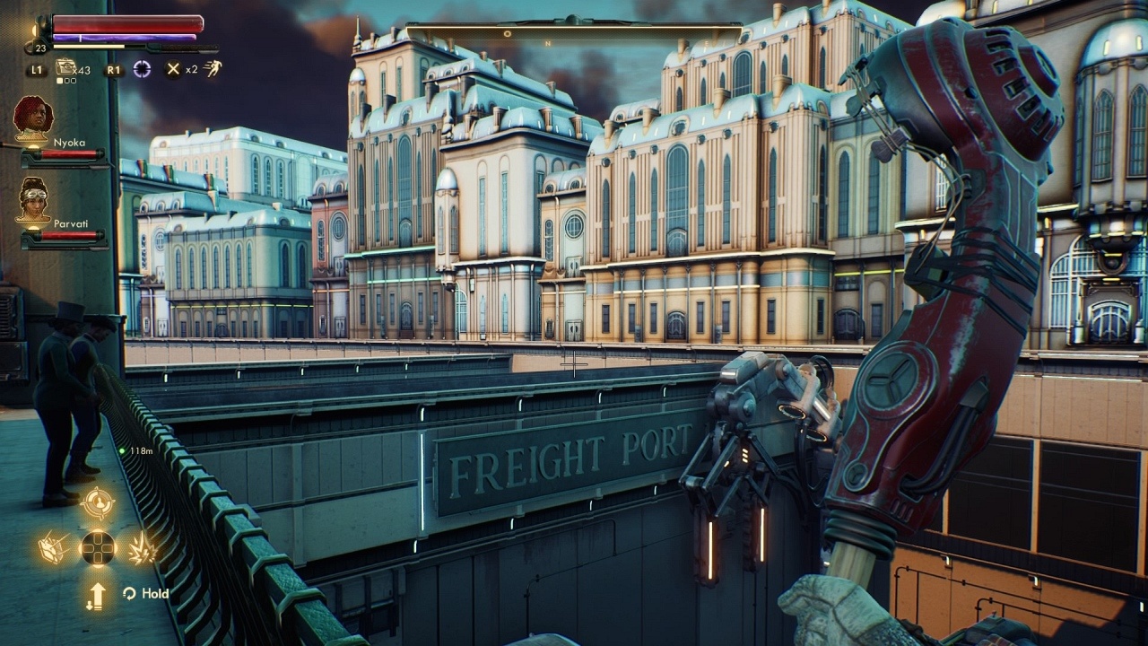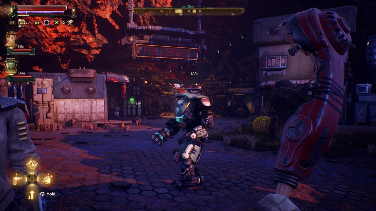 A The Outer Worlds normál nehézségi szinten nem okoz sok gondot – mentális kihívást nyújt leginkább, hogy megtalálod-e a neked tetsző legjobb megoldásokat. Lehetőség van realisztikusabb játékmenetet választani, de ott enni és aludni is kell, a későbbi társak pedig akár végérvényesen meghalhatnak. Utunk során kisebb csapatot gyűjthetünk magunk köré, akik saját küldetésekkel is rendelkeznek, és segítenek a beszélgetések közben. Egyszerre két tagot cipelhetünk magukkal, ilyenkor bizonyos előnyökre is szert tehetünk (a papot választva például jelentősen megnő a lódítási képességünk). Romantikus kapcsolatba nem kerülhetünk egyikkel sem, maximum a barátságokat virágoztathatjuk ki. Az említett frakciók területein elzárt részekbe hatolhatunk be spéci eszközünkkel (és eltulajdonított kódokkal), a tiltott területeken pedig holografikus álcaruha kerül bandánkra. Az embereken kívűl él néhány fajta állat is a rendszerben, de ezek szinte kivétel nélkül húsevők (a bioszférát rendesen szétcseszték elődeink...).