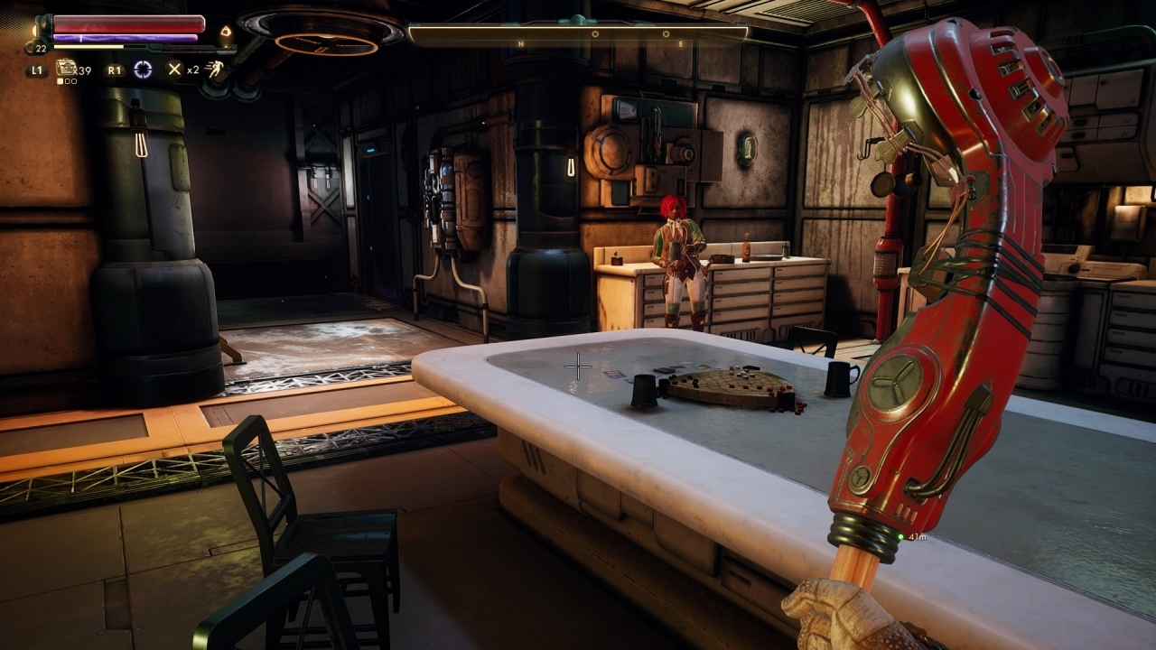 A hosszas hibernáció egyfajta mellékhatásként hősünk képes belassítani az időt, de közben mozoghatunk is (ez tulajdonképpen a Falloutból megszokott rendszer továbbgondolása). A központi hajónkról tudunk gyorsutazni is a rendszerben, de túl sok helyszín nincs (a játékidőhöz mérten persze azért elég). Vicces, hogy bevállalhatunk egy rakat fóbiát egy-egy bónusz skillpontért cserébe. Ilyen például a tériszony vagy a félelem a robotoktól – ilyenkor értelemszerűen ha a közelébe érünk a rettegett dolognak vagy helyzetnek, negatív státuszváltozást kapunk egy rövid ideig.