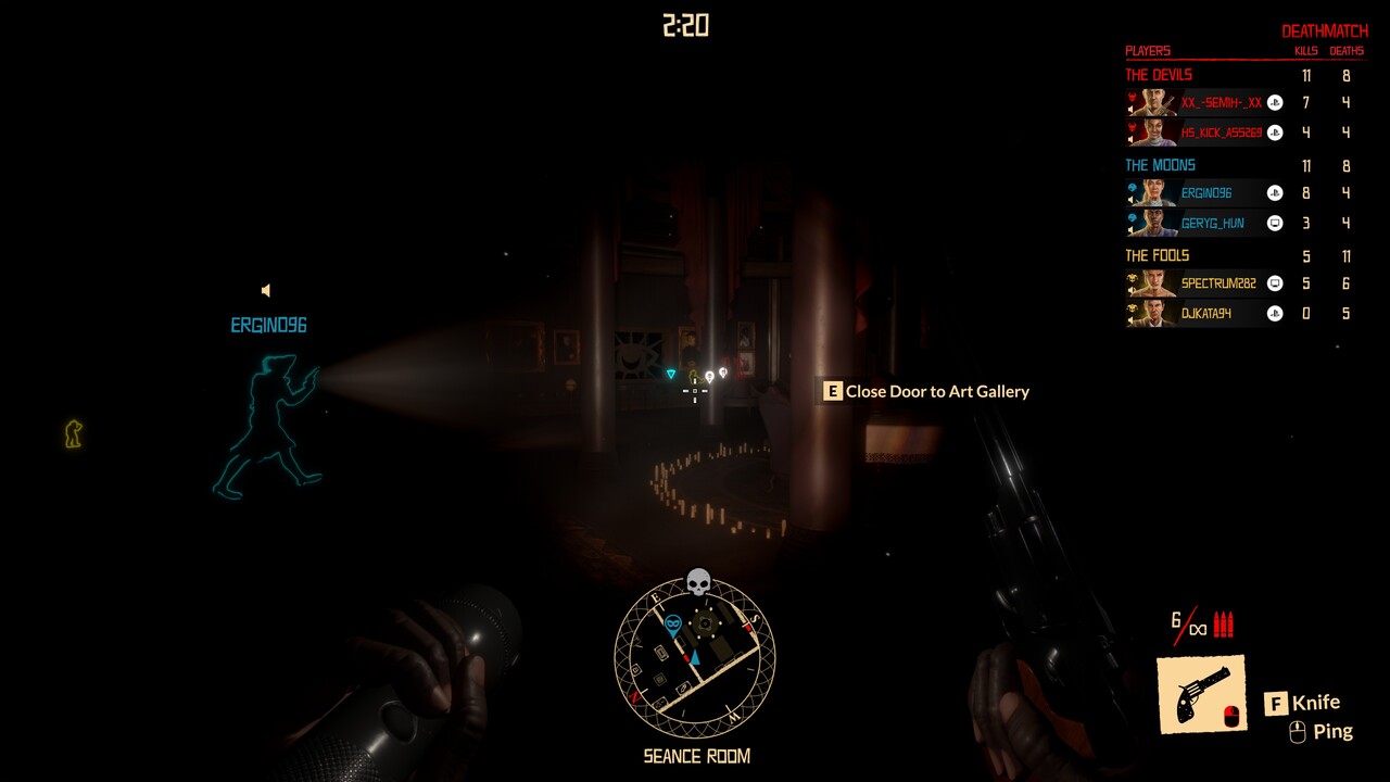 Sajnos azonban még így is piszok hamar unalomba fullad a Midnight Murder Club, amin nem segít sokat az sem, hogy egész korrekt mennyiségű játékmód van benne. Van sima free-for-all és klasszikus TDM is, ezek mind a már említett zseblámpás mechanikára épülnek. De sem ezek, sem a botok elleni meccsek nem képesek hosszabb időre lekötni az embert. Ez meg is érződik a lobbyn is, ahol nem könnyű játszótársakat találni.