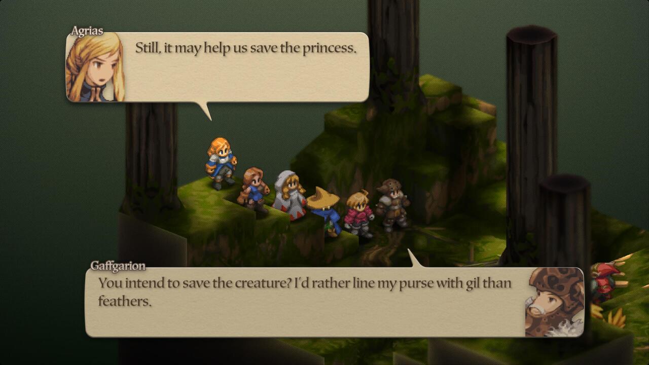 A nagyobb fordulatokra emlékeztem, mert nem egyszer öltem bele annak idején több tíz órát az egészbe, de a kisebb, régen jelentéktelennek tűnő dolgok most jobban estek felnőtt fejjel. Még mindig lenyűgöz ahogy megalkották és felépítették a játékot – konkrétan egy dioráma mindig az aktuális „pálya”, ami nagyon hangulatos. Persze minden szebb lett, például a víz jelentősen javult, a színek is élénkebbek, a karakterek jobban mutatnak, és még egy kis vizuális elemet is hozzáadtak a beszédablakokhoz, ahogy jár a piciny szájuk. Olyan mellékszereplők is kaptak szöveget, akik régen nem, valamint a szövegkönyvet is átírták kissé, hogy jobban menjen a beszédhez. Aki szereti a politikát az örülhet, mert egy külön kis menüben meg lehet nézegetni, hogy a történet pontjain melyik figura mit csinált – ez a Final Fantasy XVI-ban látotthoz hasonló kissé, csak egyszerűbb.