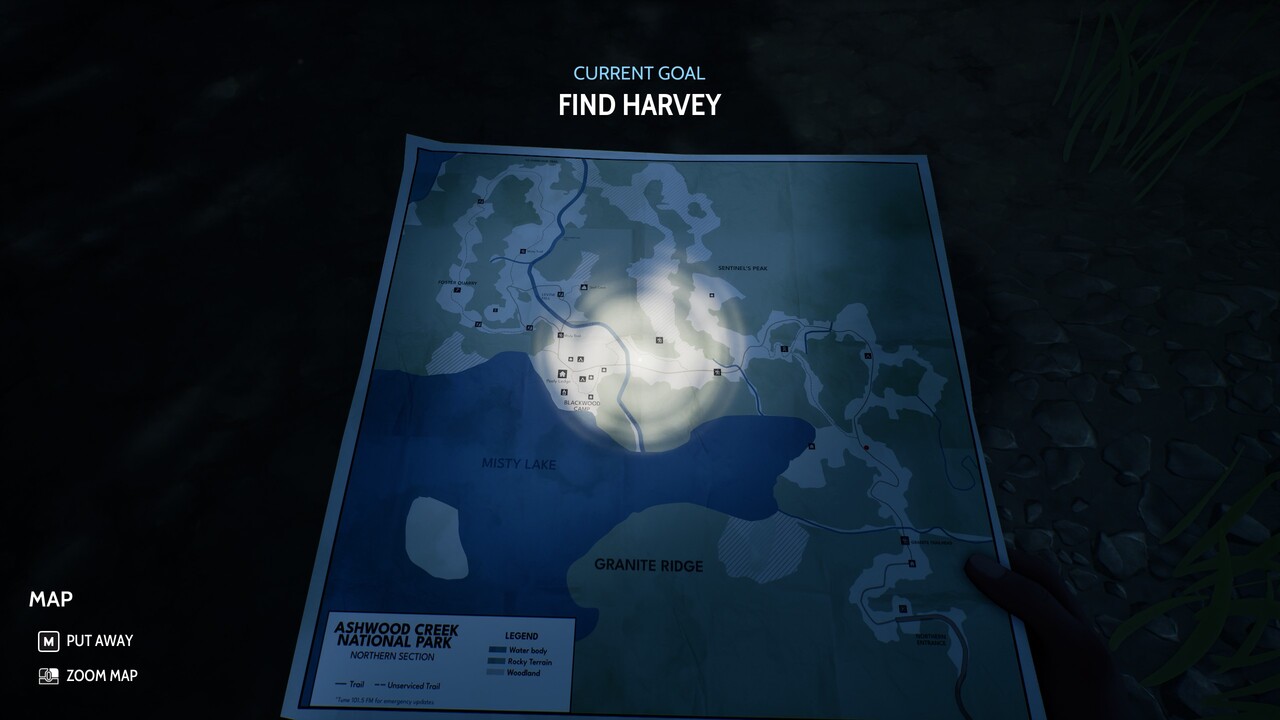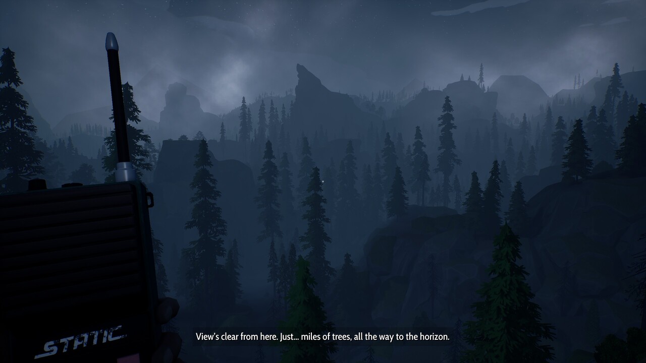 A játék teljes egészében a nemzeti park területén játszódik, azt kell gyalogosan töviről-hegyire átkutatnunk. Ám az már az első néhány perc után egyértelművé válik, hogy ez nem egy könnyed séta lesz a parkban. Az erdő hatalmas és nyomasztó, folyamatosan furcsa zajok vesznek körül, gyakran érezzük azt, mintha nem is lennénk egyedül. Közben mégis minden elhagyatott, a legtöbb helyszín olyan, mintha épp csak percekkel az érkezésünk előtt hagyták volna ott az emberek, de mégsem találkozunk senkivel. Különféle helyszíneket fedezhetünk fel, mint a kempingező, az erdei tábor, erdészkunyhó, barlangok és bányák. Ahogy haladunk előre a sztoriban és apránként gyűjtjük össze a nyomokat, egy természetfeletti történet mozaikja rajzolódik ki előttünk. Ettől és úgy általában a játék hangulatától olyan az egész élmény, mintha egy jobbféle X-akták epizódba csöppentünk volna. E téren Krystof Knesl csillagos ötösre vizsgázott.