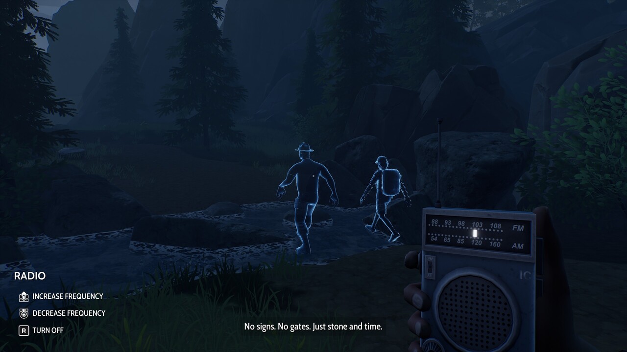 Ami a játékmenetet illeti, egyszerű, de ötletes megoldásokra épít. Sokat kommunikálunk a walkie-talkie-n, de közben van nálunk egy zsebrádió is, illetve később baltát, gyufát, drótvágót és egyebeket is magunkhoz vehetünk. Itt jegyezném meg, hogy a játék hagyja, hogy szívassuk magunkat. Én például simán otthagytam a park térképét a pálya kvázi elején, hogy aztán jó fél óra fejből bolyongás után (egyébként egész ügyesen tájékozódtam a virtuális erdőben, ez bíztató a jövőre nézve, ha kirándulni mennék...) adjon tippet a játék, hogy talán az bizony hiányzik. Caplathattam is vissza a pálya elejére, hogy megszerezzem. De hasonlóan jártam a gyufával is, mert ezeket a tárgyakat felvehetjük megvizsgálni és után a fontosakat el is tehetjük, ám nem kötelező, és a játék sem figyelmeztet, ha nem tesszük.