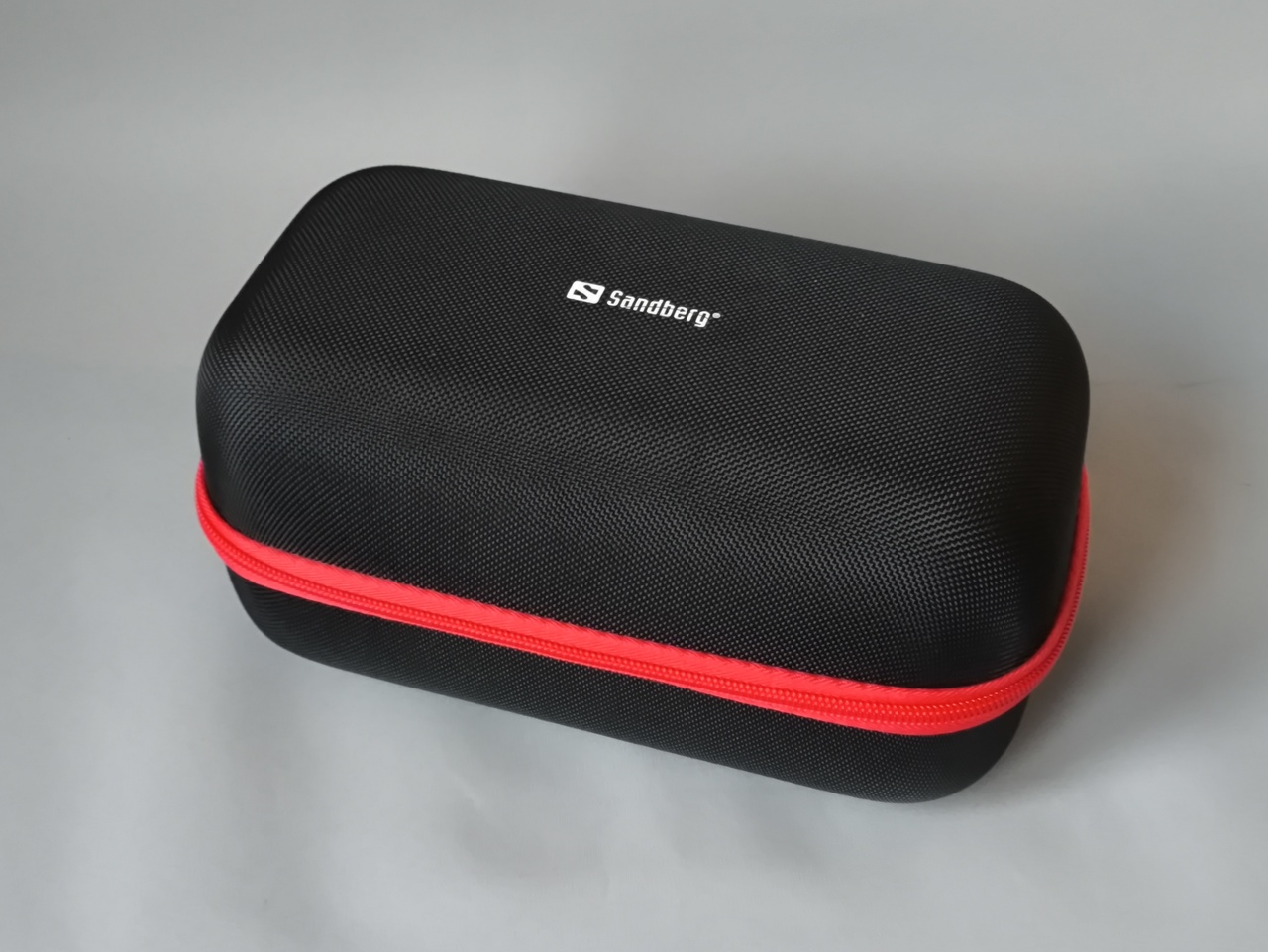 A Sandbergtől érkezett kütyü tetszetős hordtáskában kapott helyet. Ennek egyik felében van maga a powerbank, amely elég nagyméretű, és ezt nem a 10000 mAh paraméter indokolja, hanem az extra funkciók, amelyekkel ellátták. A lámpa még hagyján (bár ugye így nagyobb méretű izzót kaphatott), a non plusz ultra ez után következik: ez a termék használható autók bikázására, valamint mini kompresszorként abroncsok vagy akár focilabda felfújására is. A táska másik felét a kiegészítők töltik ki, így a bikázókábel, a pumpa csöve és végződései, valamint egy USB Type-A/Type-C kábel.