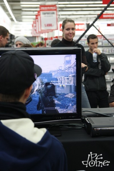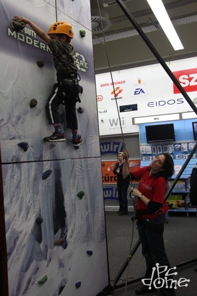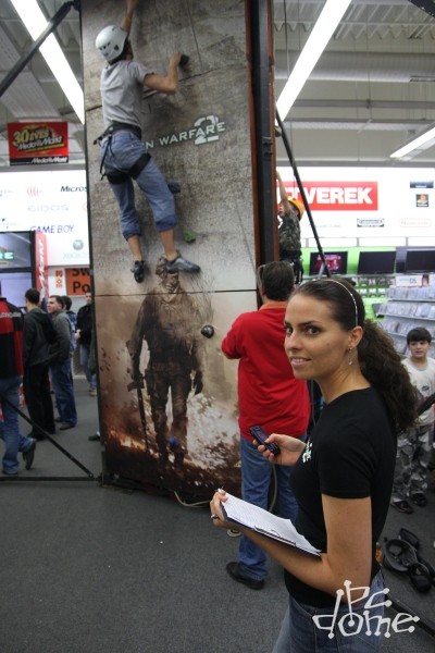 Világszerte rajongók milliói várnak az éjfélre, amikor a boltokba kerül a Call of Duty sorozat legújabb része, a Modern Warfare 2. A játékot hazánkban forgalmazó BSC is egy nyitóeseménnyel készült e jeles alkalomra, mégpedig a Pólus Centerbeli Media Markt áruházba várva a játékosokat. Reggel 10 óta lehetett ott kipróbálni a népszerű FPS sorozat legújabb epizódját, valamint felmászni az áruház tetejéig érő, hatméteres falra, majd délutántól verseny is indult mindkét részen. A falat leggyorsabban megmászó versenyző, illetve az MW2 három pályáján legyorsabban teljesítő játékos egy-egy MW2-es Xbox 360 csomaggal térhet majd haza éjfél után. Ottjártunkkor még nagyban zajlottak a versenyek, a játékosok egymás után döntötték meg a rekordidőket, de volt, akit a "Mission Failed" felirat fogadott a képernyőn. Alább a helyszínen készült fotóinkat láthatjátok.