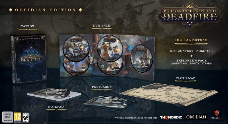 A Pillars of Eternity II: Deadfire három változatban kerül az online áruházakba: Standard, Deluxe és Obsidian Edition. Mindegyiket elő lehet már rendelni a Steamen és a GOG oldalán. Aki így tesz, az digitális tartalmakat is kap ajándékban:
